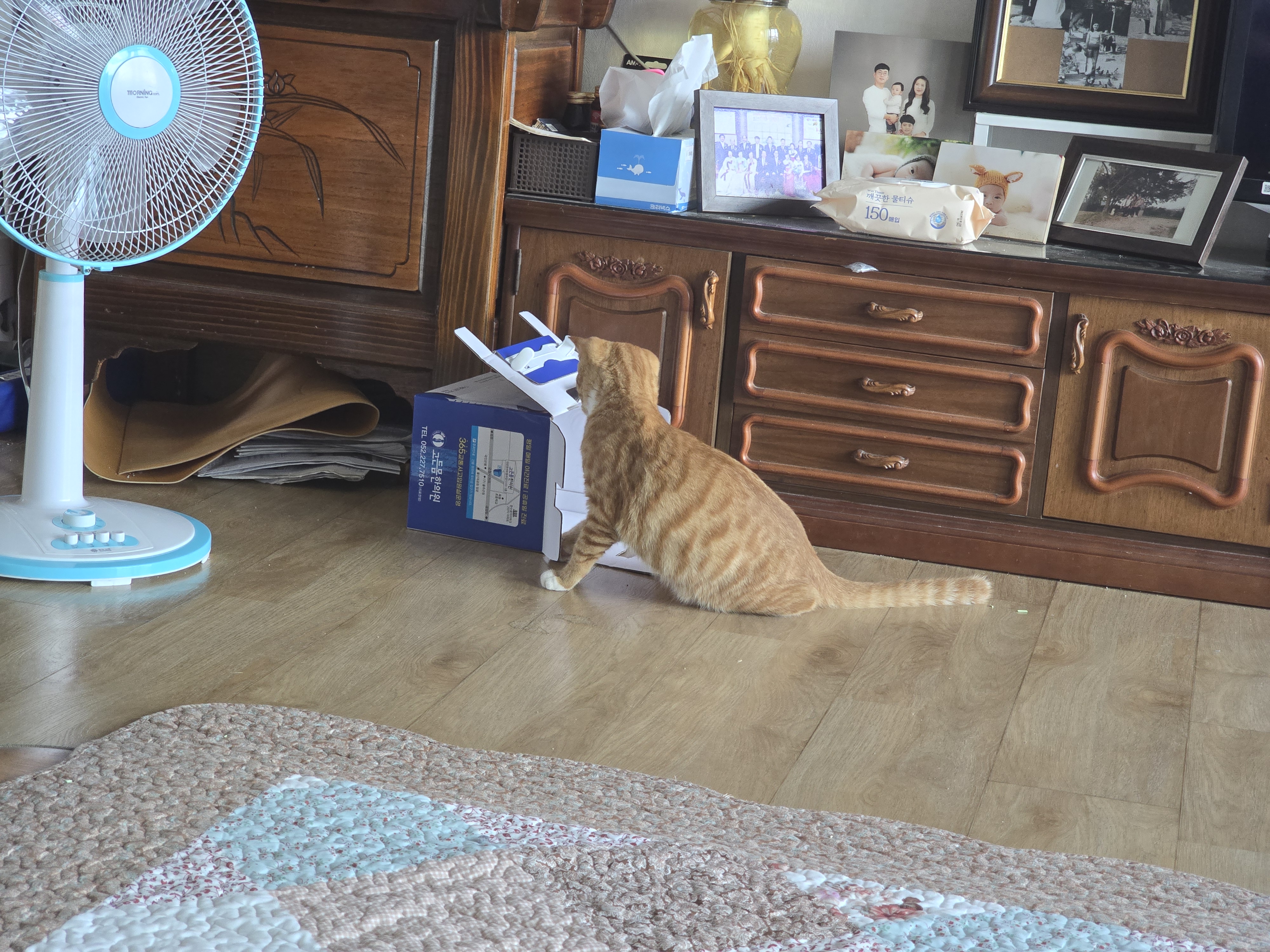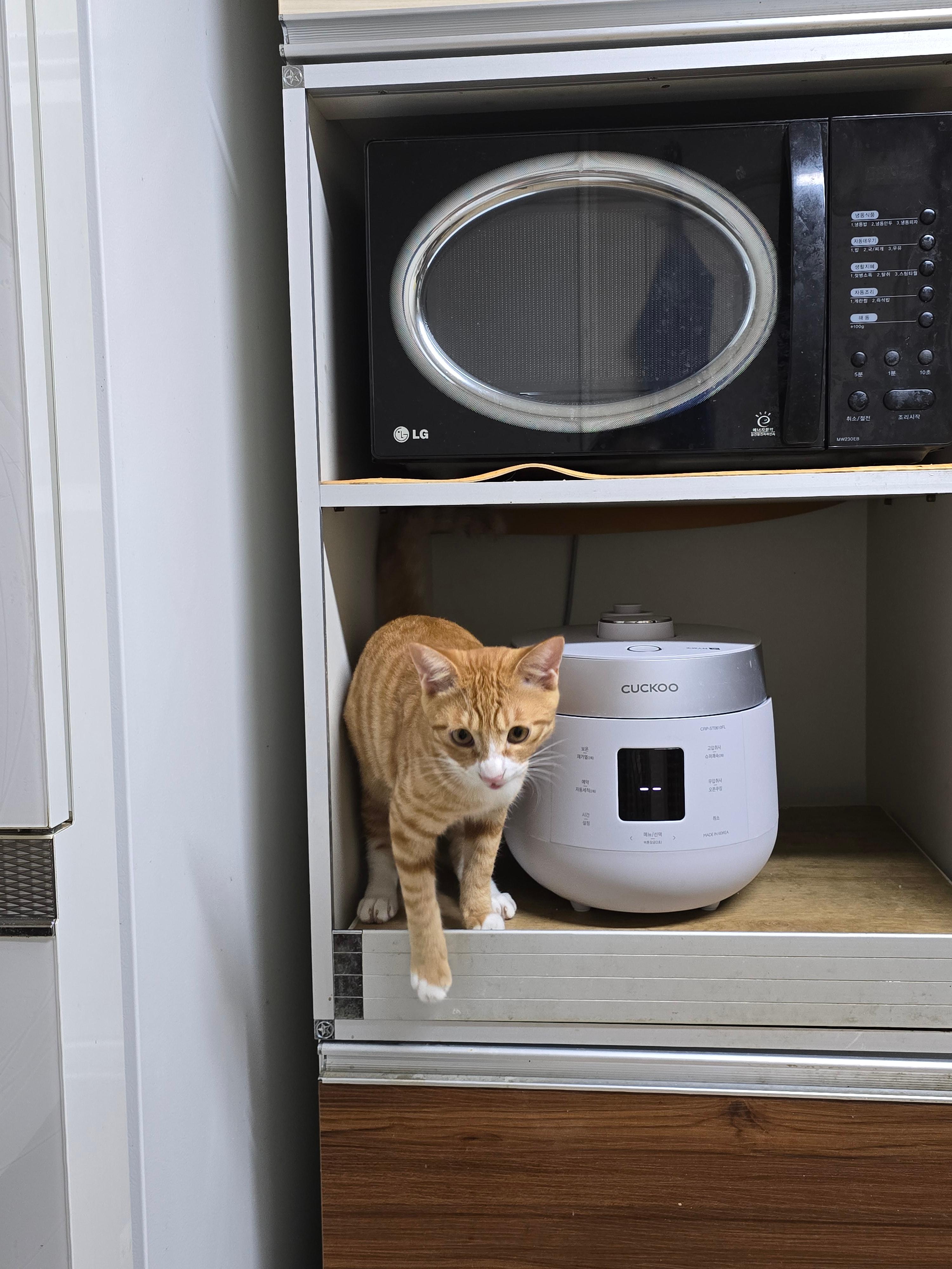 행여나 밥하는 동안 들어가서 밭솥 근처에 있다가 나오는 증기에 데일까 봐 그 걱정으로 평소에 주의를 주고 못 하게끔 제지를 하는데 그럼에도 수시로 저렇게 들어가서 반쯤 포기했다.