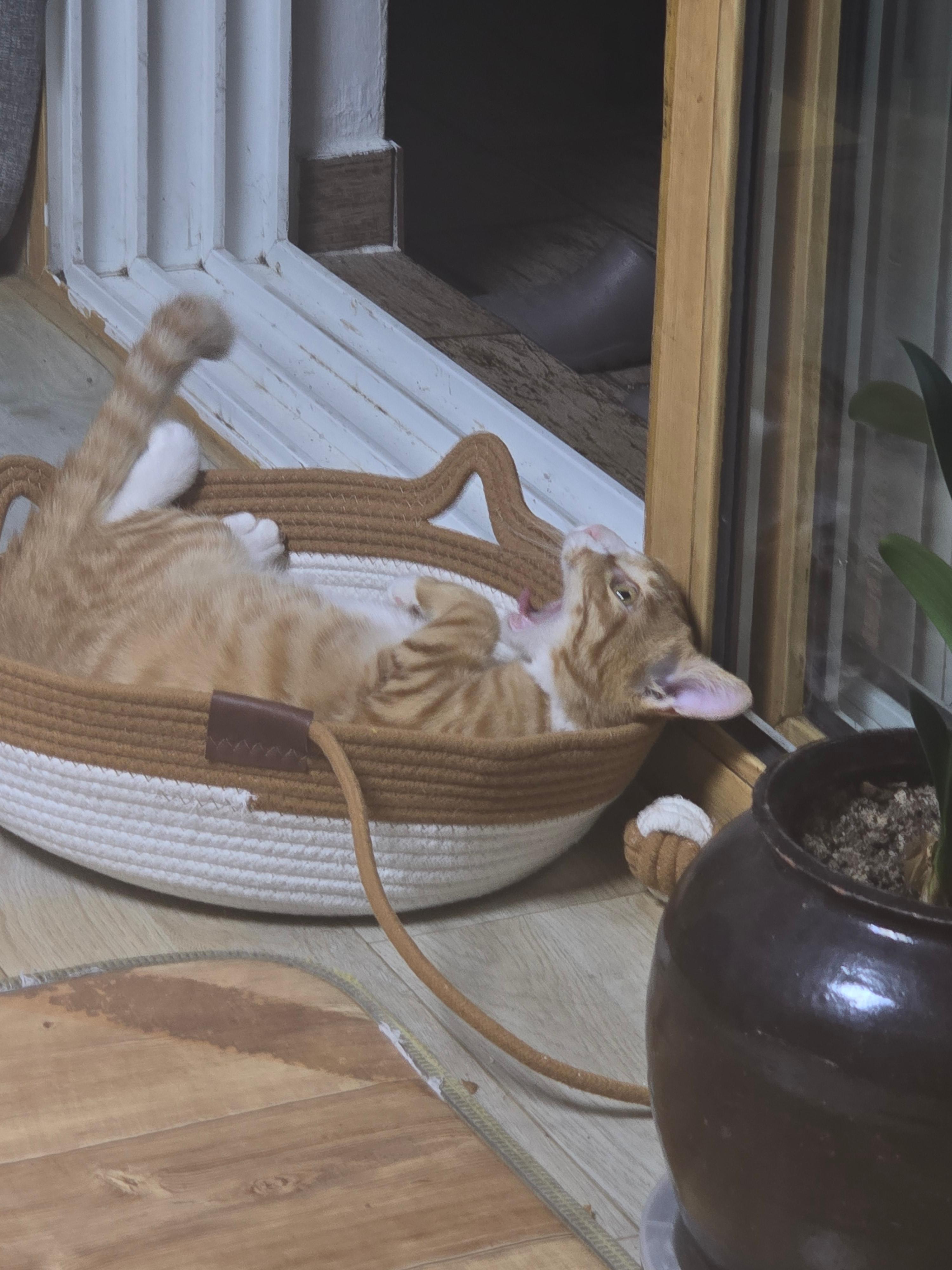 나랑 아웅다웅하다가 삐졌는지 한번씩 숨숨집에 가서 한참을 서운한듯 째려보고는 뒹굴뒹굴하다가 쉰다.