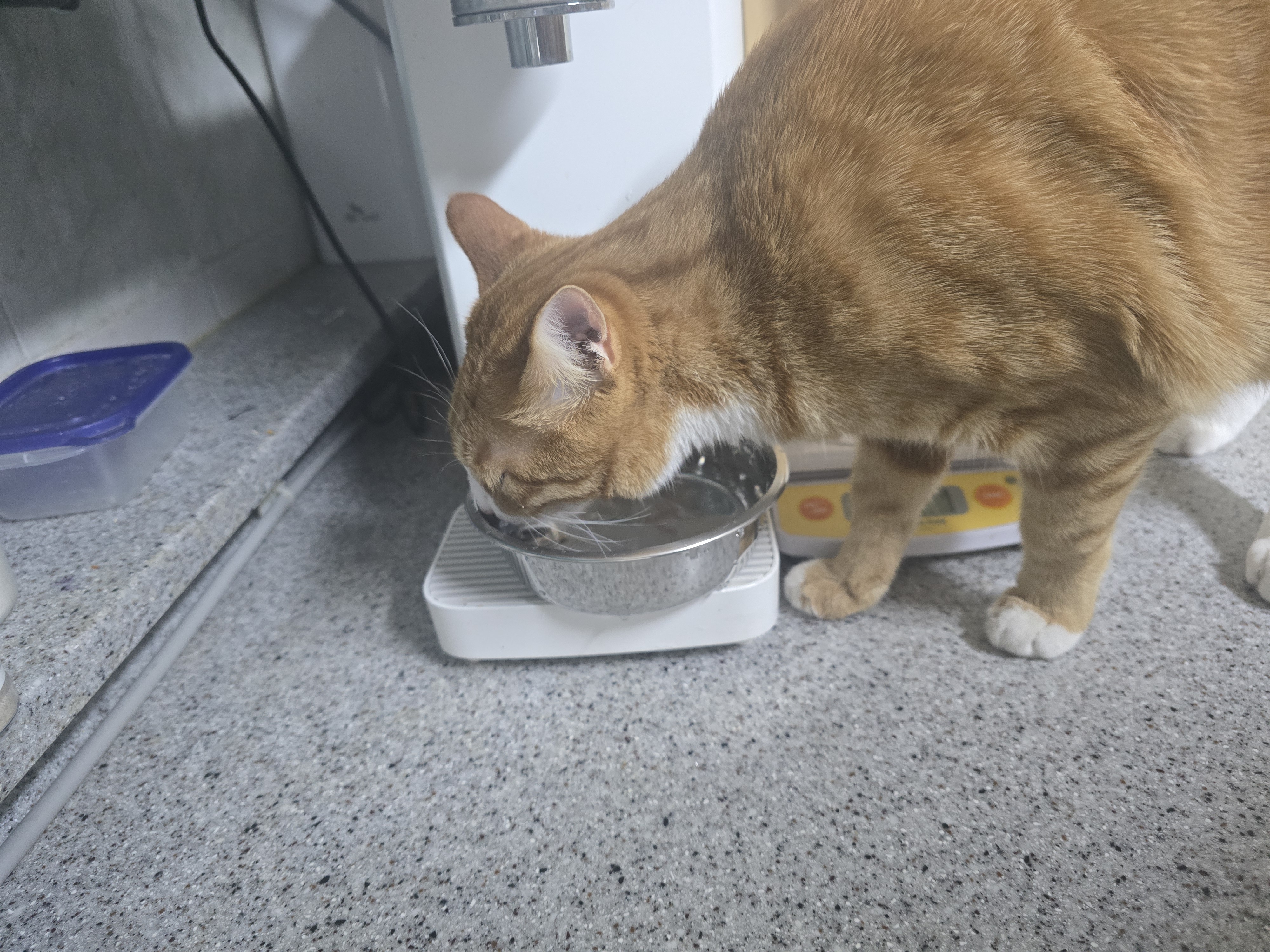 얘가 요즘 물을 물그릇에 받아주면 물그릇이랑 밥그릇이랑 같이 붙어있어서 불결하다고 느끼는 것인지 물그릇의 물은 별로 안마시고 저렇게 물을 받거나 물을 사용한 후의 수전을 핥아 먹는다.