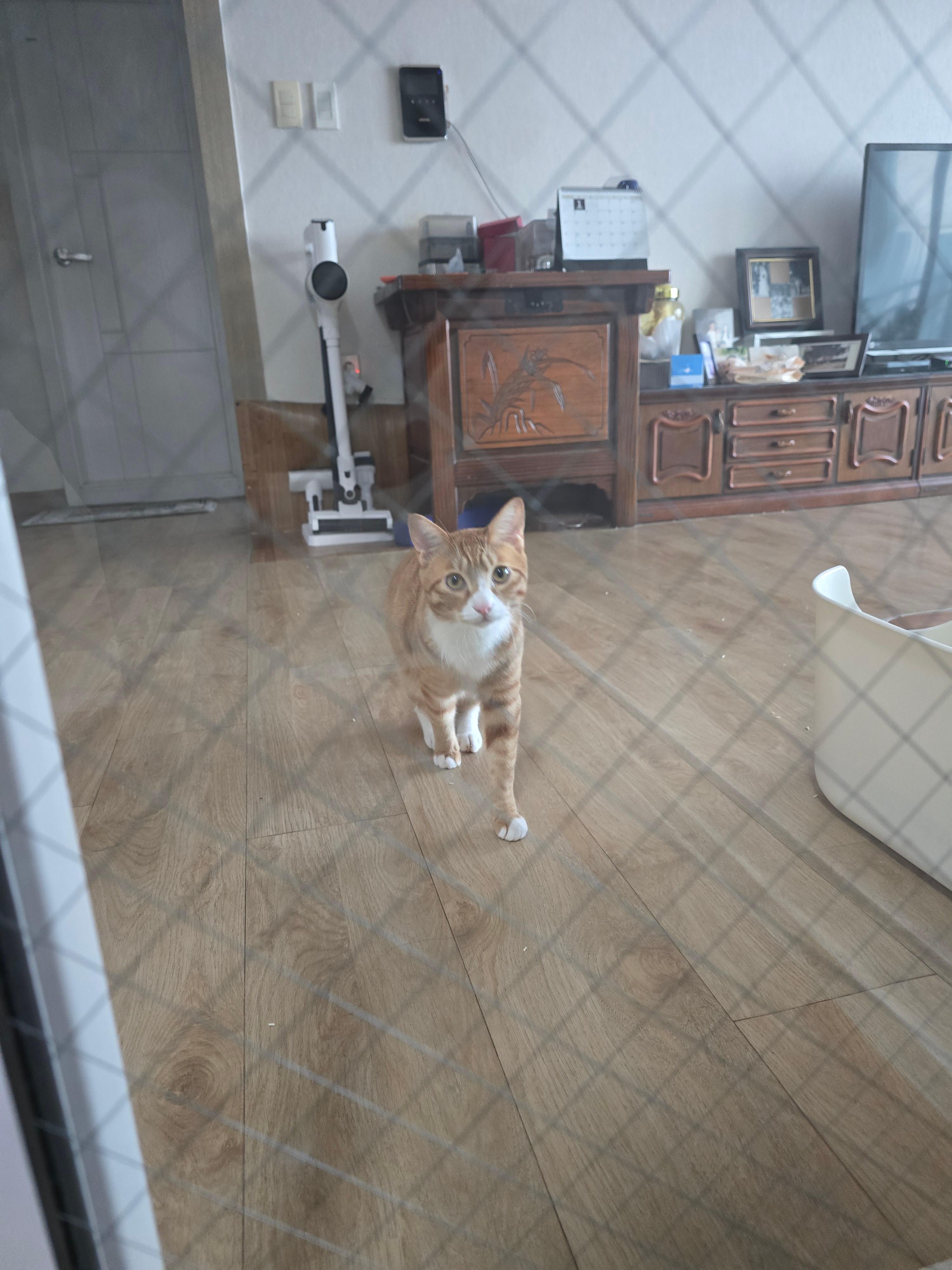 자리에 가서 누으니 간식을 얼른 받아 먹고는 안방 외 다른 공간에 순찰을 가는 토토다.^^