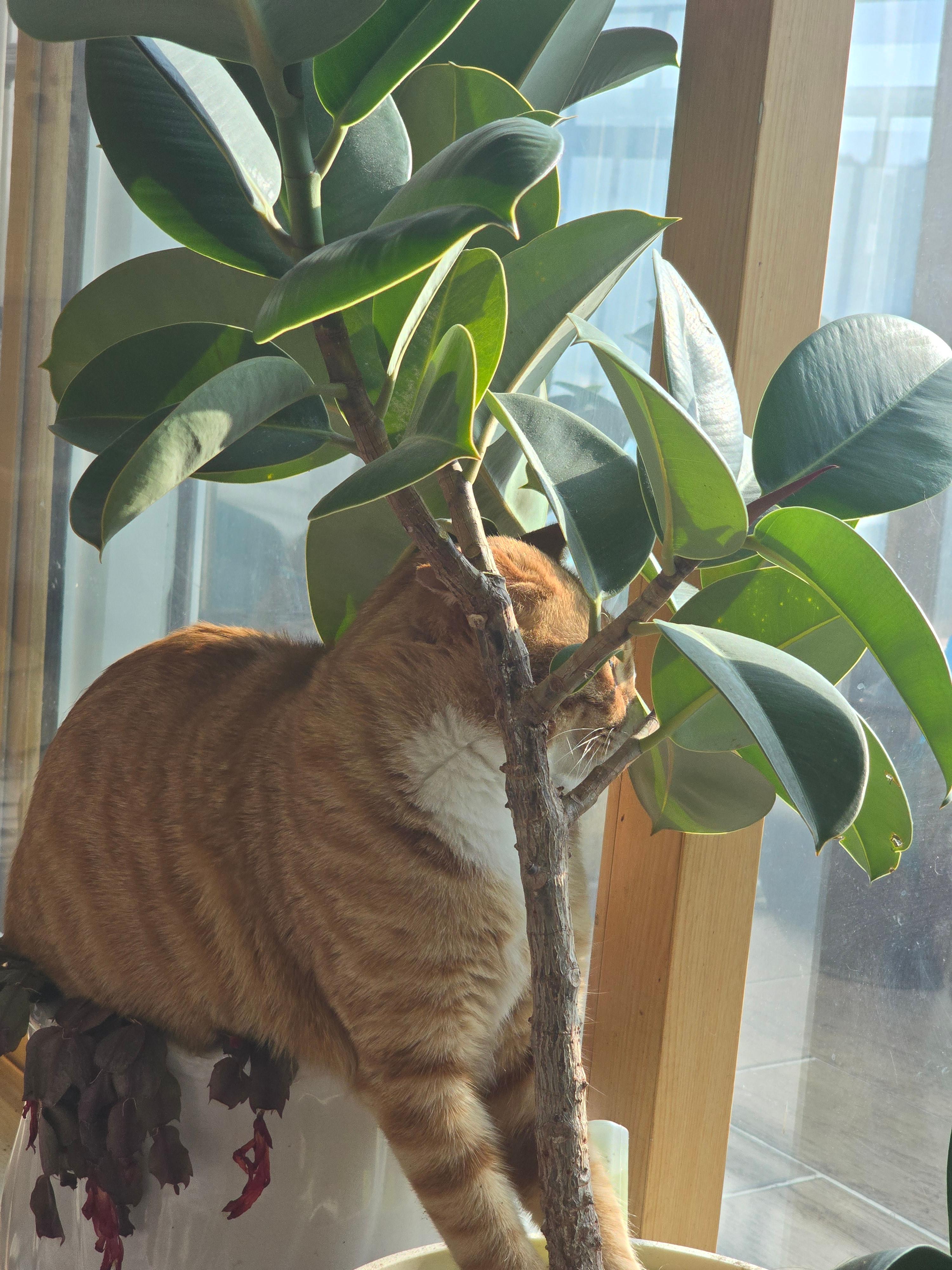 그렇게 화분들을 사랑으로(?) 쓰담쓰담하더니 어느새 따뜻한 햇볕이 드는 곳으로 와서 나른하게 잠든다.