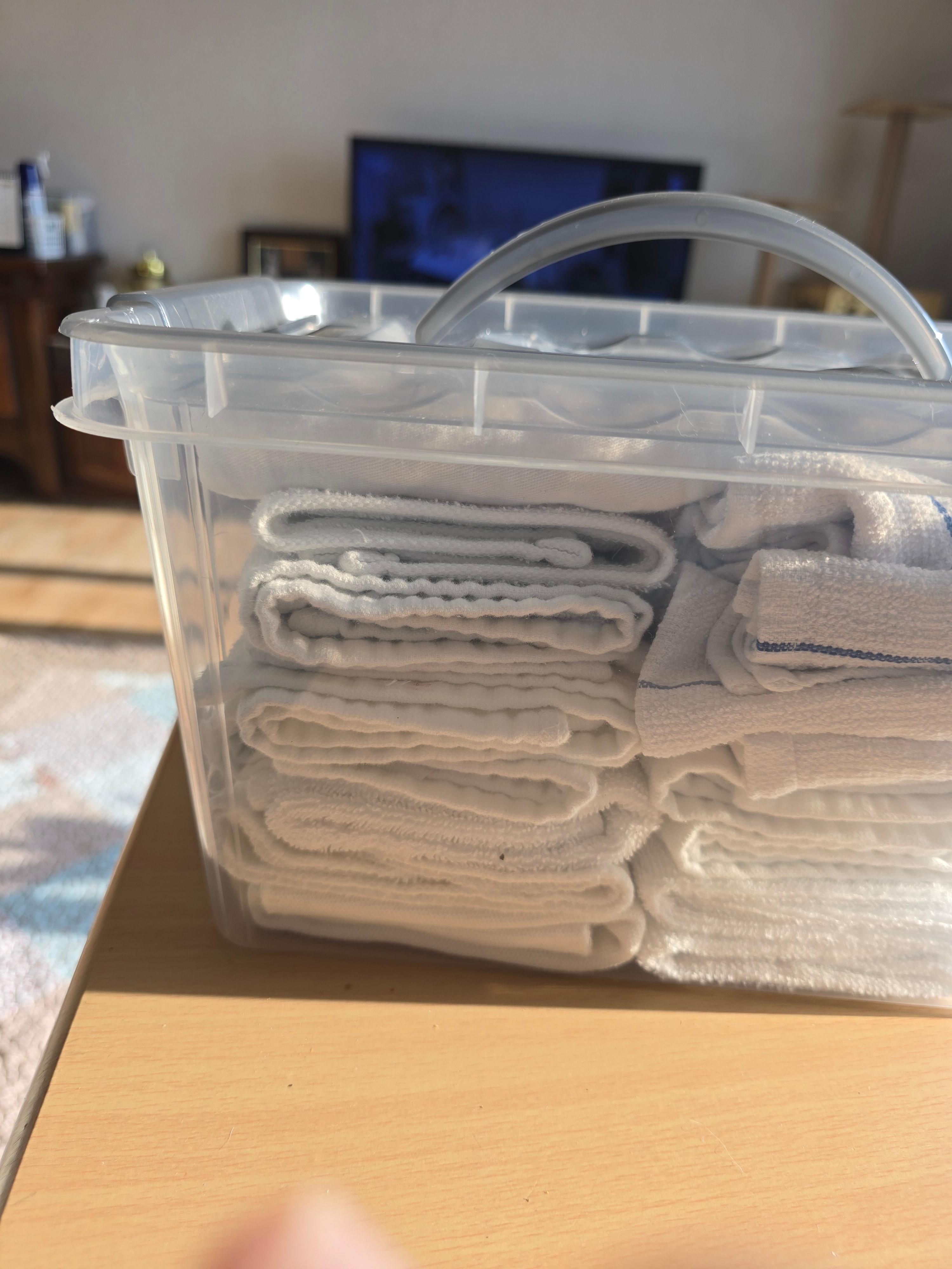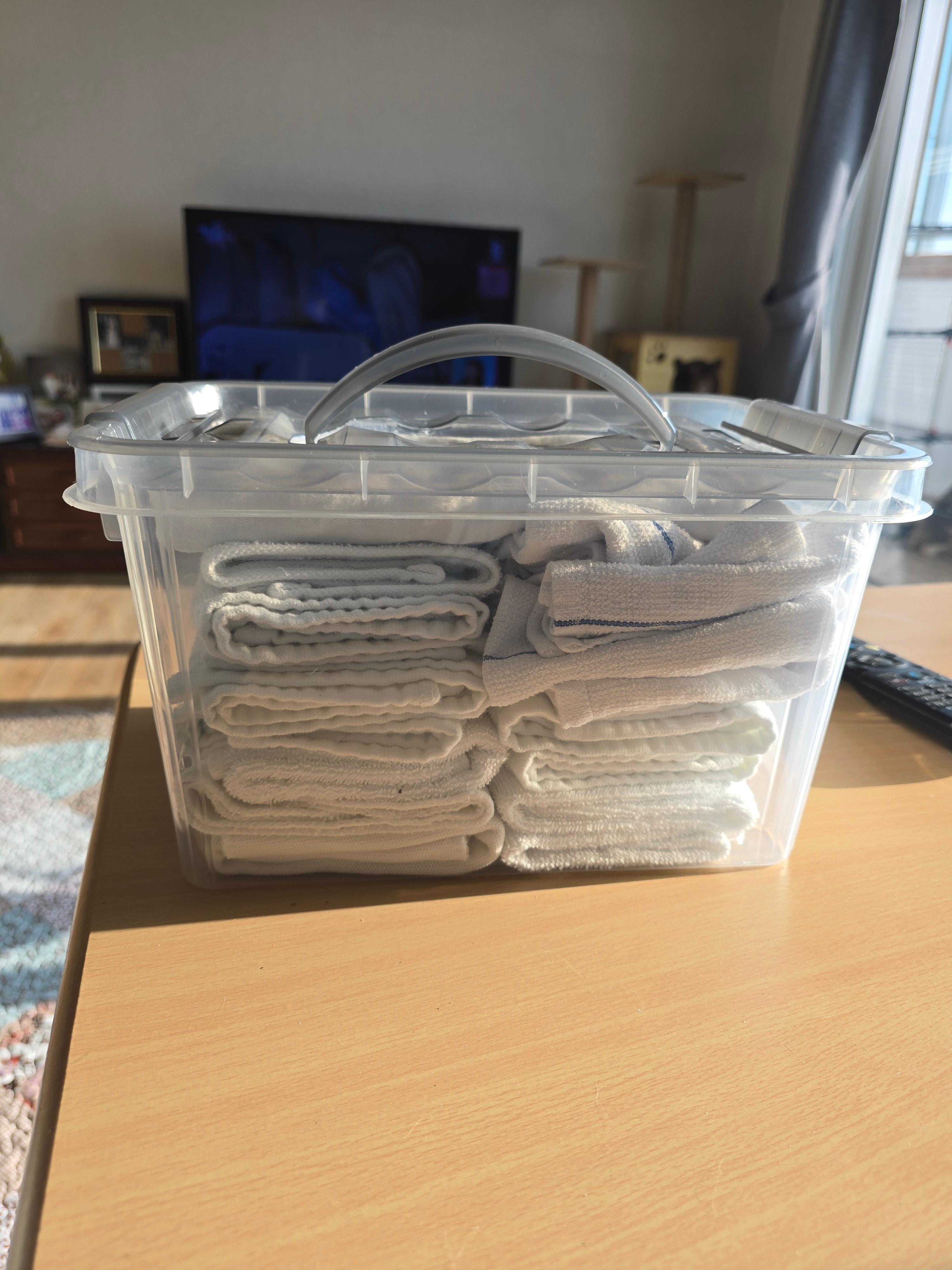 일제시대 일본에서 일하시던 외할아버지께 시집가서 해방 때까지 사셨던 외할머니께서도 그러셨는지 모르겠는데 보면 일본 고급식당이나 이자카야에서 나오는 서비스로 보았던 모습이었을 정도인데 일부러 저렇게 깔끔하게 빨아서 뽀얗게 삶아 애지중지 보관하셨던 면 행주가 그릇장 한곳에 보관되어 있는 것을 발견하고 같이 있던 면보들과 함께 다시금 빨아서 삶아 말린 후 리빙박스에 담아 보관했다.